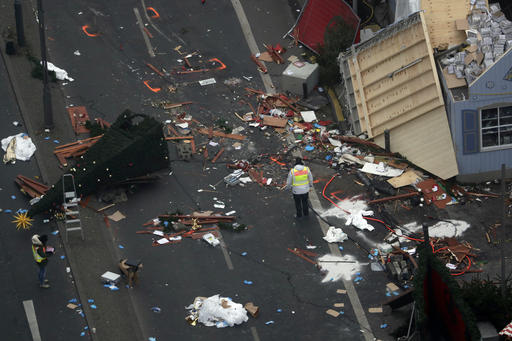 Police officers inspect the crime scene in Berlin, Germany, Tuesday, Dec. 20, 2016, the day after a truck ran into a crowded Christmas market and killed several people. (AP Photo/Markus Schreiber)