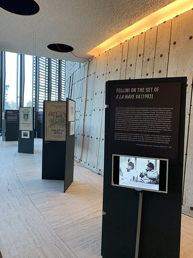 The exhibition contains a selection of documents (posters, photographs, drawings) that illustrate three thematic axes: the freedom of the artist, creativity, and the director’s commitment to the story. There are also audio and visual paths as well as an interactive component. Two themes can be added: 1. The work of creation and production (for example: Il Casanova di Fellini); 2. Fellini’s relationship with great artists of the 20th century, such as: Béjart, Balthus, Moravia, Tarkovski (from letters and photographs / Collection of the Fellini Foundation)