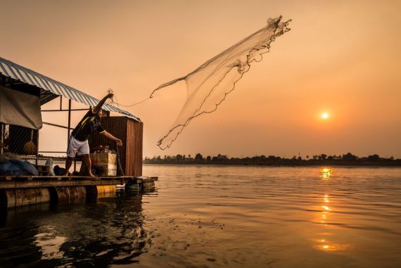 Sunset fishing on Mekong River
