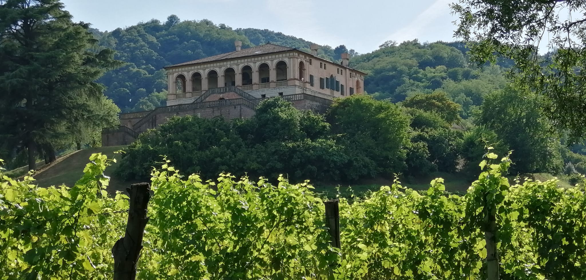 As you approach the villa, a series of vineyards gives way to the verdant geometries of the walled garden, after which the beauty of the real landscape is once again reflected in the idealised panoramas of the loggias and the interiors, covered in their entirety with frescoes by the Flemish painter Lambert Sustris.