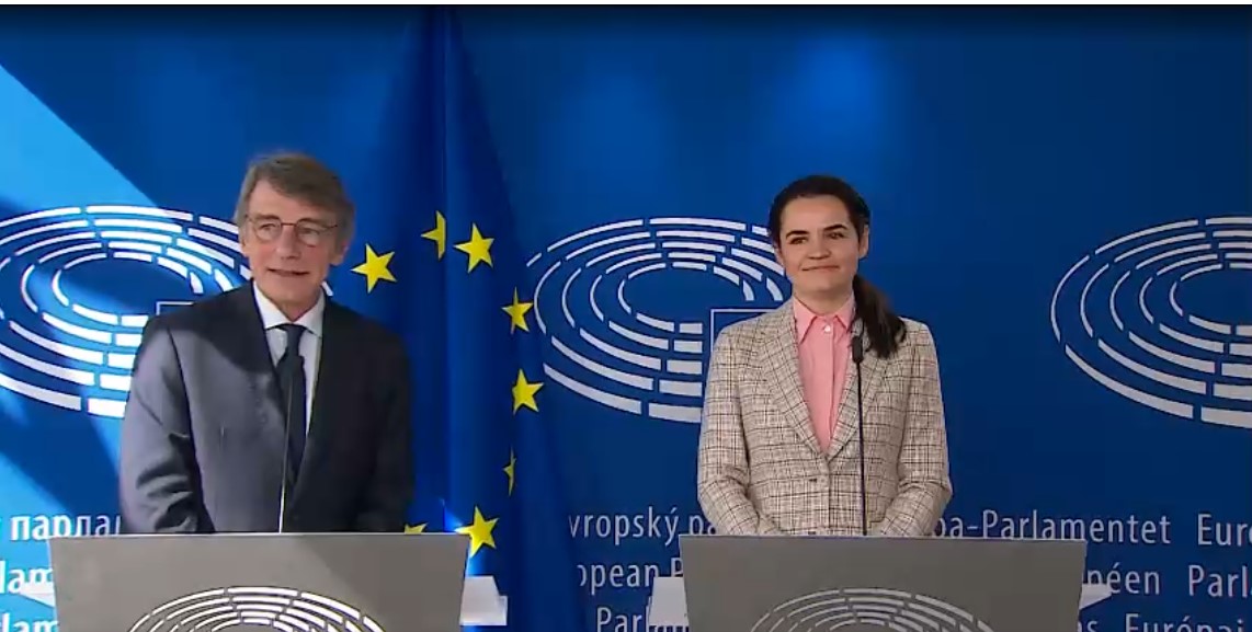 “I welcomed today Mrs Svetlana Tikhanovskaya in the European Parliament.
