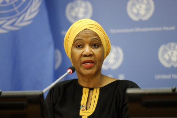 Phumzile Mlambo-Ngcuka, Executive Director of UN Women, addresses a high-level event on Women in Power at the UN headquarters in New York, on March 12, 2019. (Xinhua/Li Muzi)