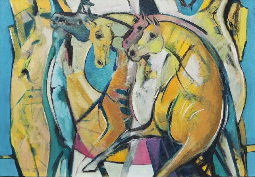 Emmanuel Guiragossian is a master in the depiction of the human figure and animals. In many of his paintings, humans are central, not as individuals but in groups. It is characteristic that many people stand together, closely together, leaning on each other, intertwined. These are abstract compositions of woven human figures that symbolize the collective nature of humanity. In the 1980s, the horse became a subject in his work. In many pieces, the horse is central, such as in the “Circle of Life” painting that can be seen in the Divan. Exhibitions have taken place in countries such as Lebanon, Germany, Canada, the USA, the United Arab Emirates, and Jordan. Beyond focusing on his own artistic career, he closely worked with his father, Paul Guiragossian. In 1991, the EMMAGOSS Art Gallery was founded in Lebanon in partnership with his father and with the support of his family. In 2007, the gallery expanded with the opening of a second location in Dresden.