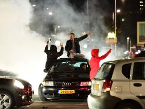Hundreds of Turkish protesters scuffled with police as authorities tried to end a demonstration at the Turkish consulate in Rotterdam, where a Turkish minister was