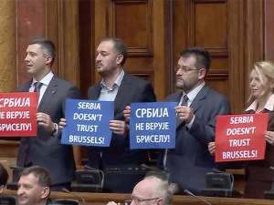Serbian lawmakers booed the European Union’s top diplomat Federica Mogherini while she addressed the Parliament during tour aimed at playing down tensions in the