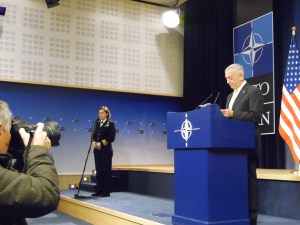 NATO HQ: Secretary of Defence Jim Mattis at his press conference read carefully worded statement, with accents on the unity of the Alliance. He also softened the message on